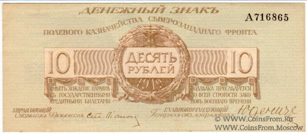 10 руб 1919 А№716865 Юденич РВ