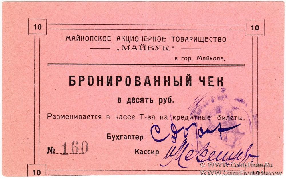 Бронированный чек без даты. АКЦИОНЕРНОЕ ТОВАРИЩЕСТВО "МАЙБУК".