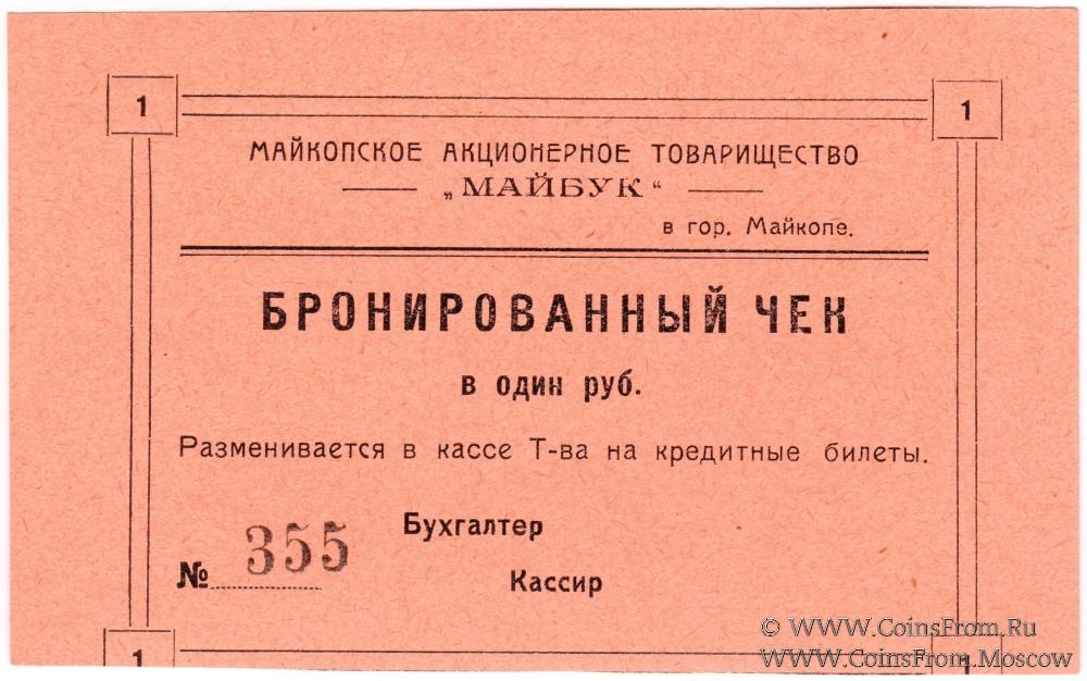 Бронированный чек без даты. Бланк. АКЦИОНЕРНОЕ ТОВАРИЩЕСТВО "МАЙБУК".