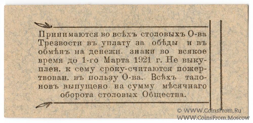 Талонная карточка без даты (действительна до 1.03.1921 г.). Серия ОС. Благовещенское Общество Трезвости.