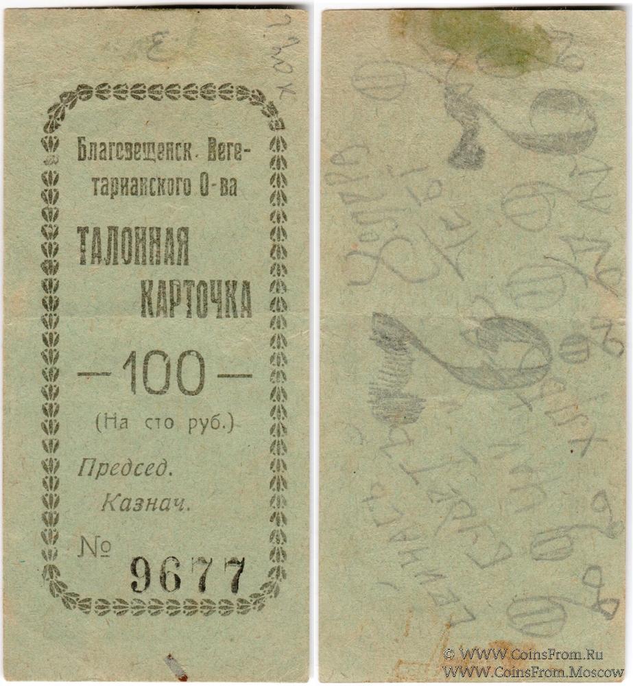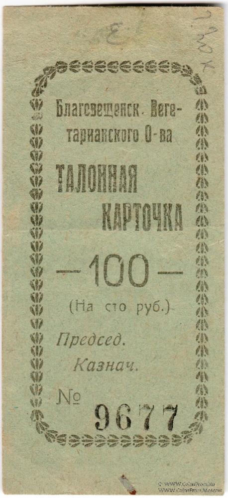 Талонная карточка без даты. Благовещенское Вегетарианское Общество.