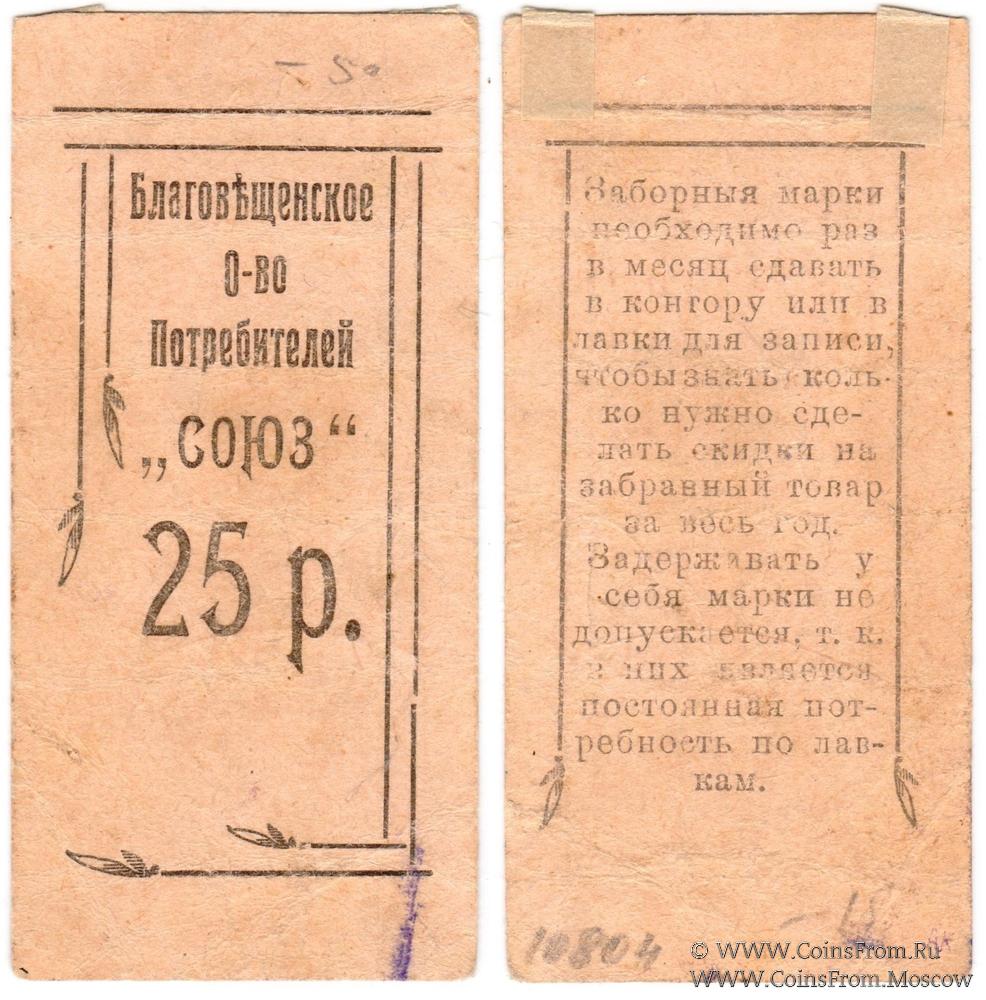 Заборная марка без даты. Благовещенское Общество Потребителей "Союз".