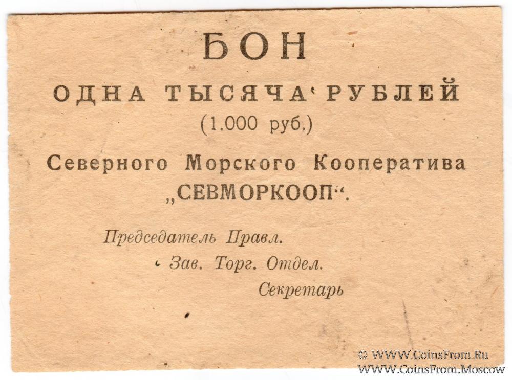 Бон без даты (1923 г.). Бланк. Северный Морской Кооператив "СЕВМОРКООП".