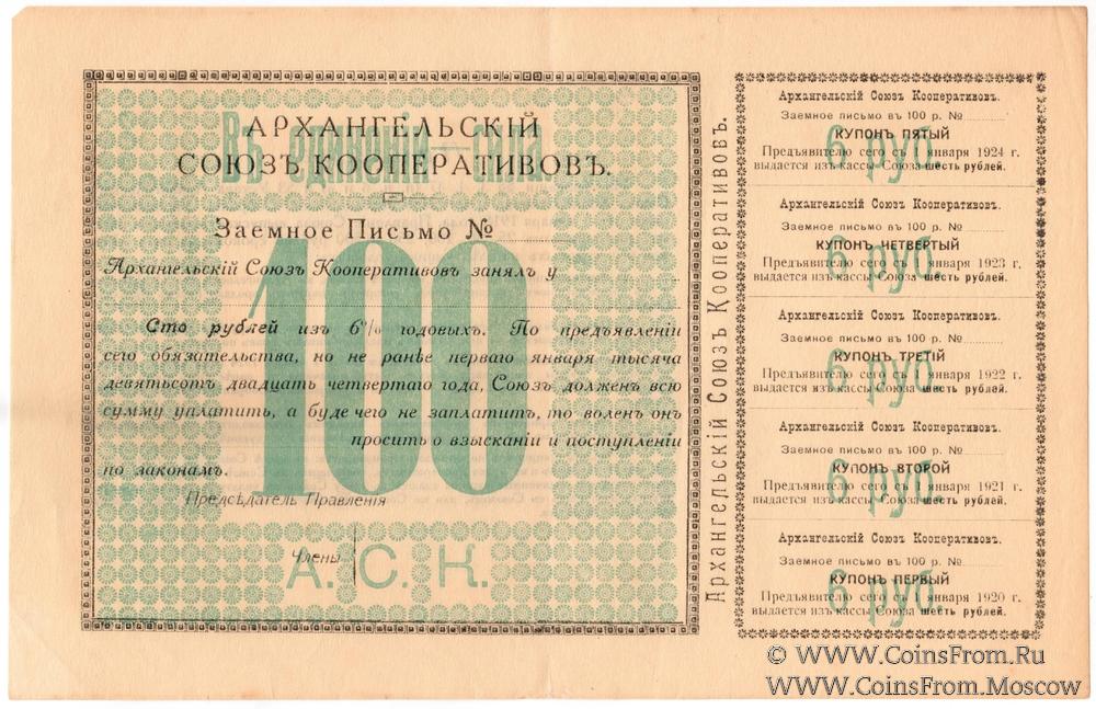 Заемное письмо 1918 г. Архангельский союз кооперативов.