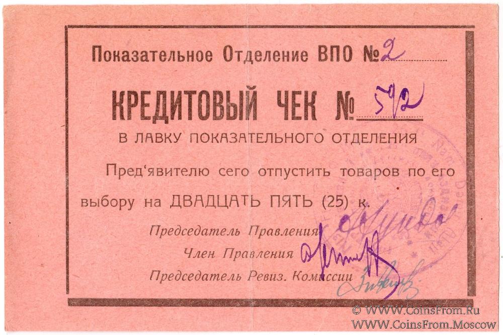 Кредитовый чек без даты. Показательное отделение В.П.О. 1-го стрелкового им. 26 комиссаров Азербайджанской дивизии.