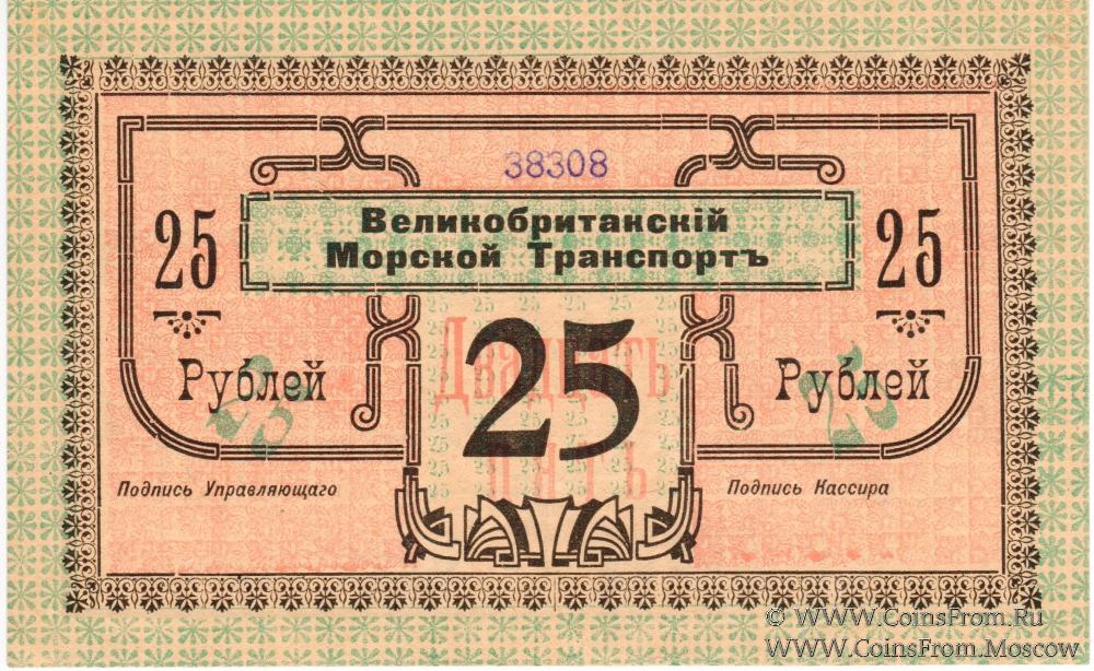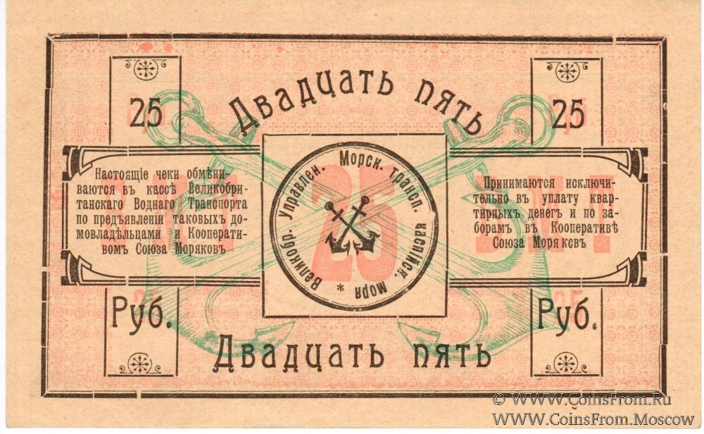 Чек. Номер синий. Фон реверса розовый. Великобританский морской транспорт.