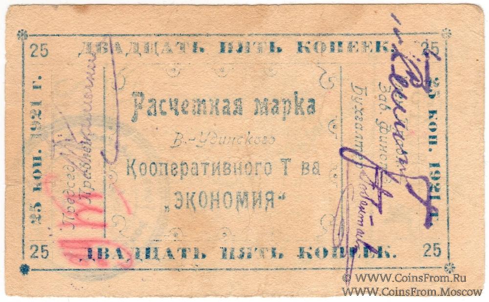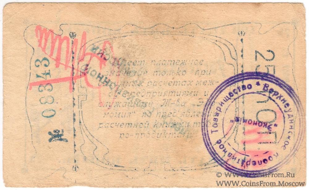 Печать на реверсе: "Верхнеудинское Кооперативное товарищество (по кругу) / "Экономия" (по центру)".