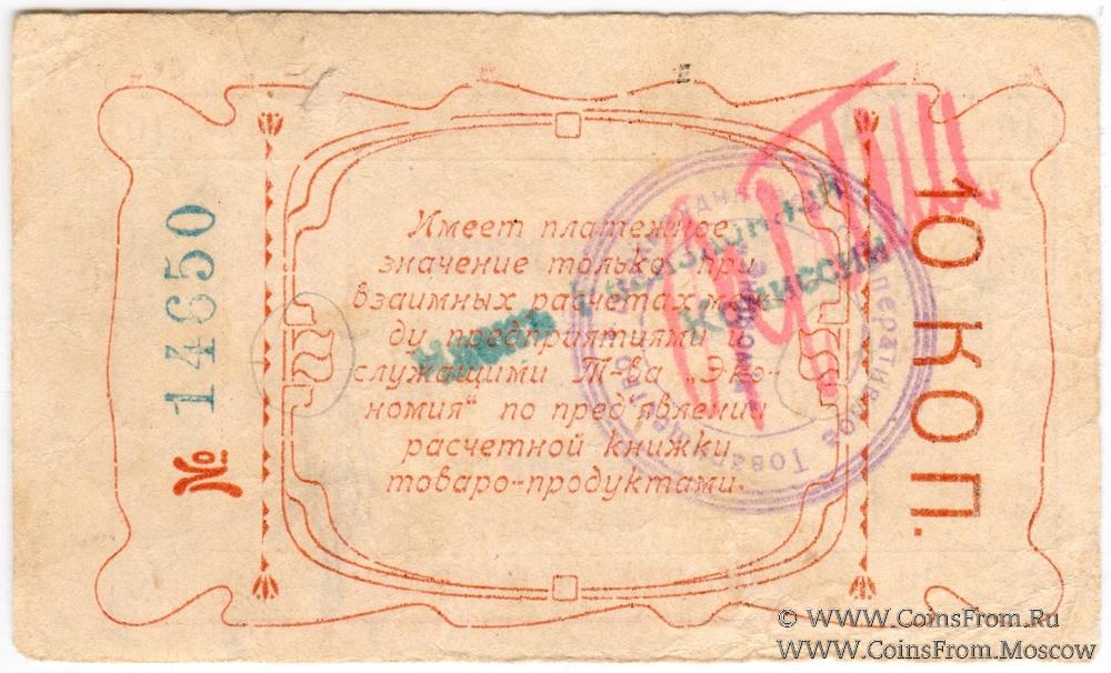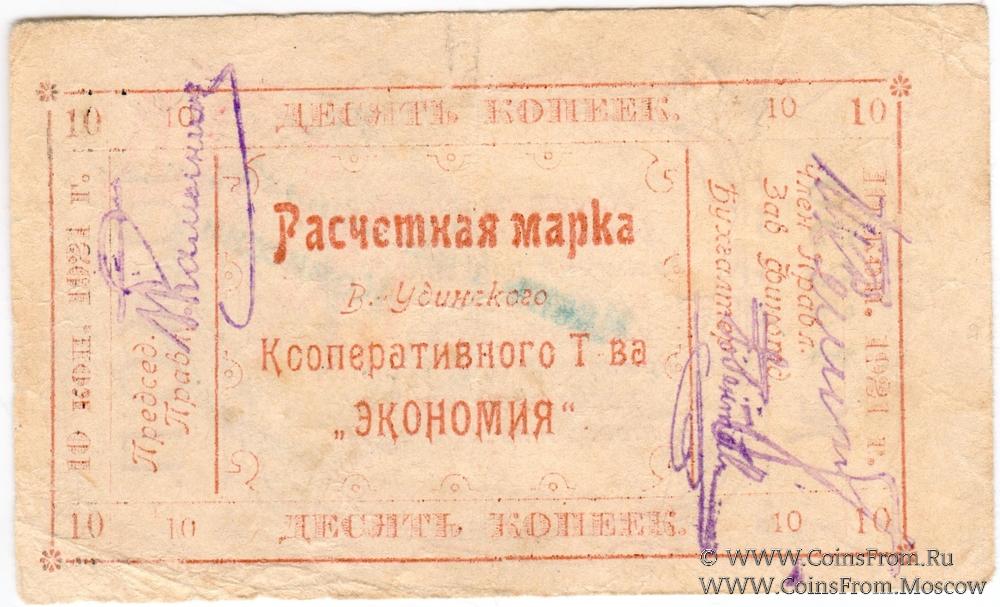 Печать на реверсе: "Верхнеудинское Кооперативное товарищество (по кругу) / "Экономия" (по центру)".