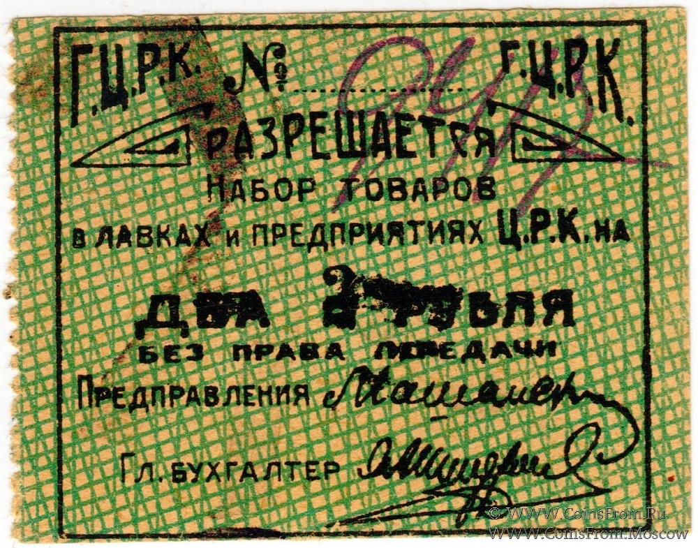 Без названия, без даты. Зеленый. Гомельский Центральный рабочий кооператив (Г.Ц.Р.К.).