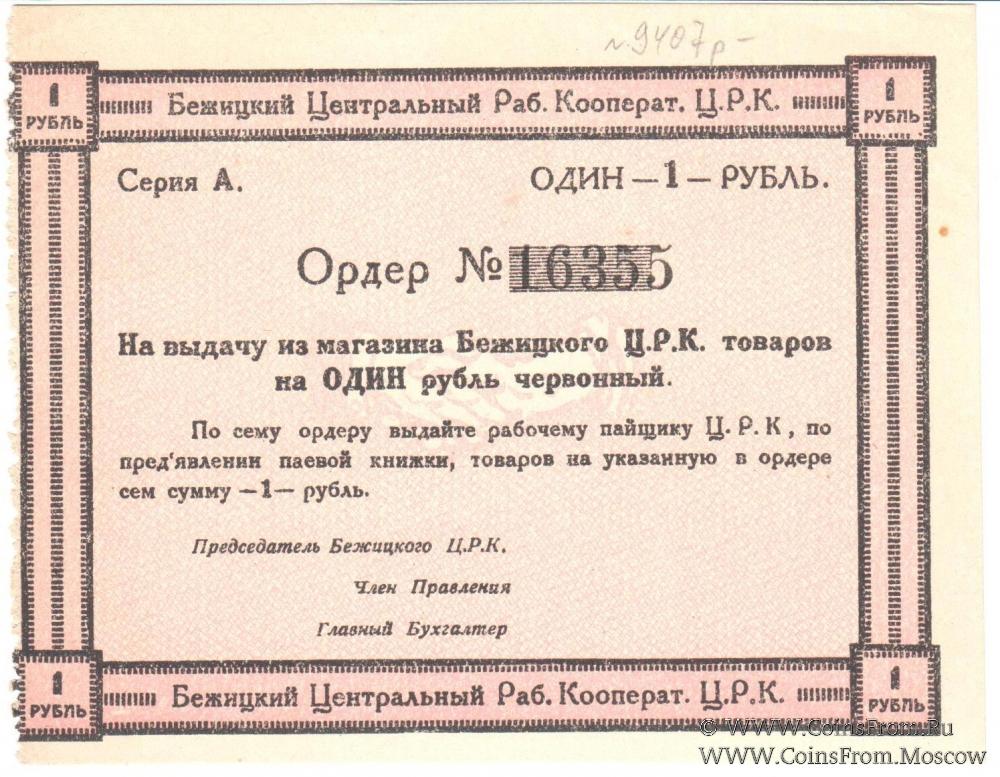 Ордер. Серия А. Бланк. Бледно-розовый фон. Бежицкий Центральный Рабочий Кооператив (Ц.Р.К.)