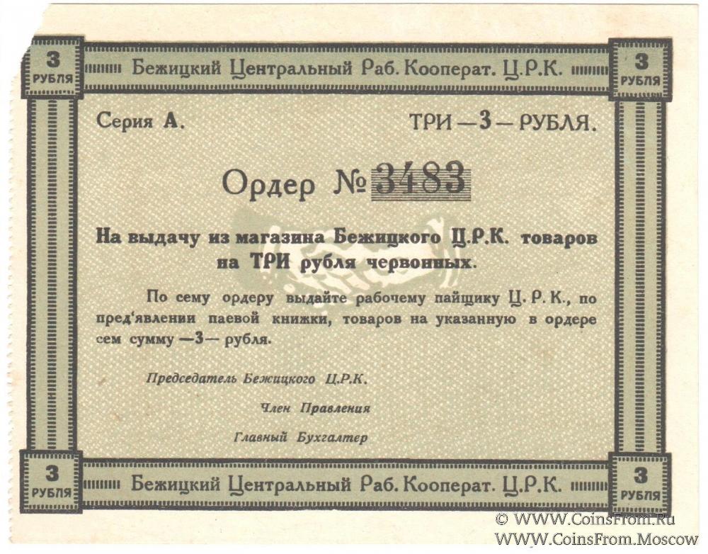 Ордер. Серия А. Бланк. Бежицкий Центральный Рабочий Кооператив (Ц.Р.К.)