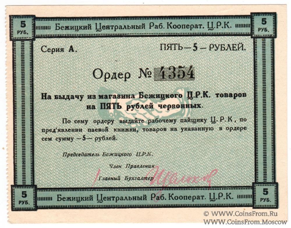 Ордер. Серия А. Подпись главного бухгалтера. Бежицкий Центральный Рабочий Кооператив (Ц.Р.К.)