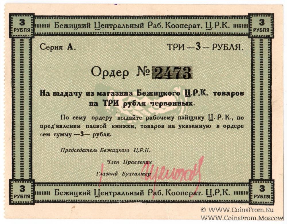 Ордер. Серия А. Подпись главного бухгалтера. Бежицкий Центральный Рабочий Кооператив (Ц.Р.К.)