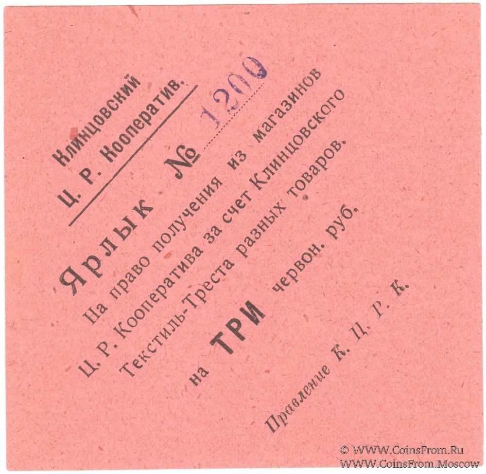 Ярлык без даты (1923 г.). Клинцовский Центральный Рабочий Кооператив.