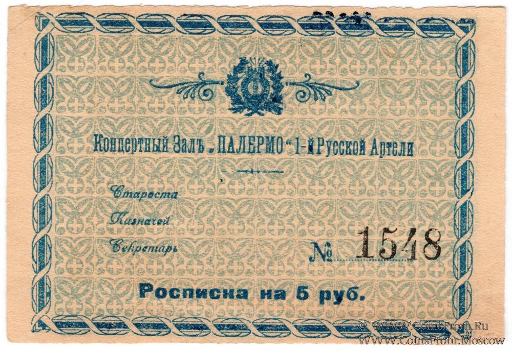 Расписка без даты. Бланк. Концертный зал "Палермо" 1-й Русской Артели.