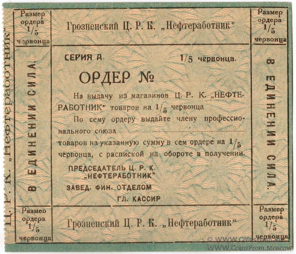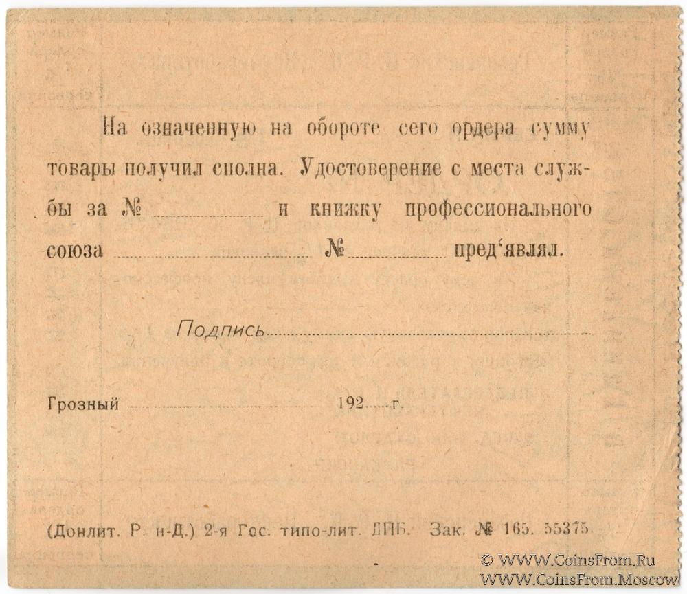 Ордер без даты (1923 г.). Бланк. Грозненский Центральный Рабочий Кооператив "НЕФТЕРАБОТНИК".