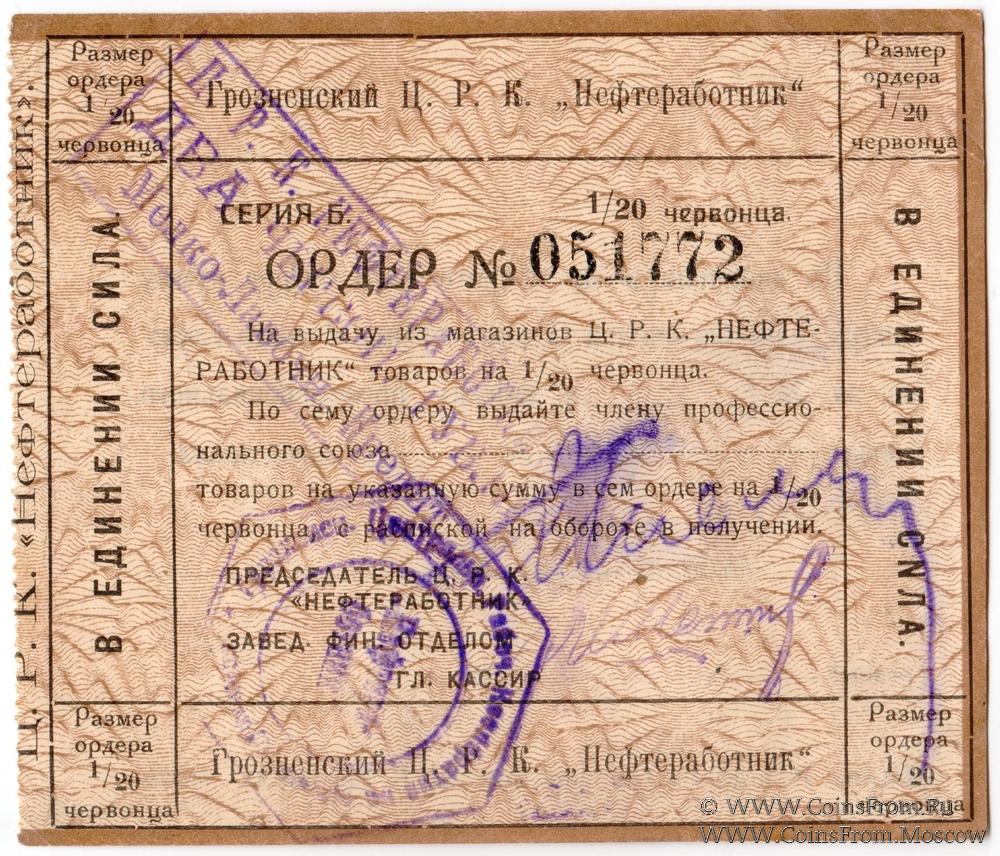 Ордер без даты (1924 г.) с надпечаткой в червонных рублях.