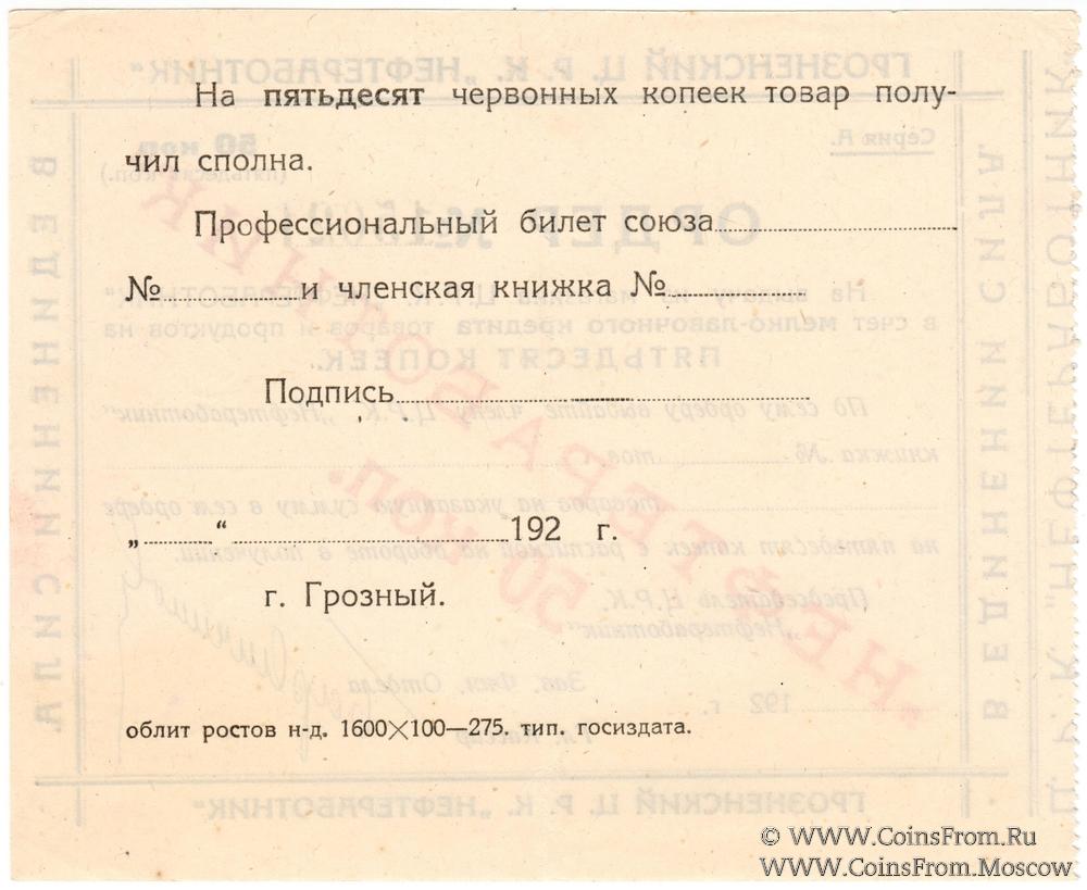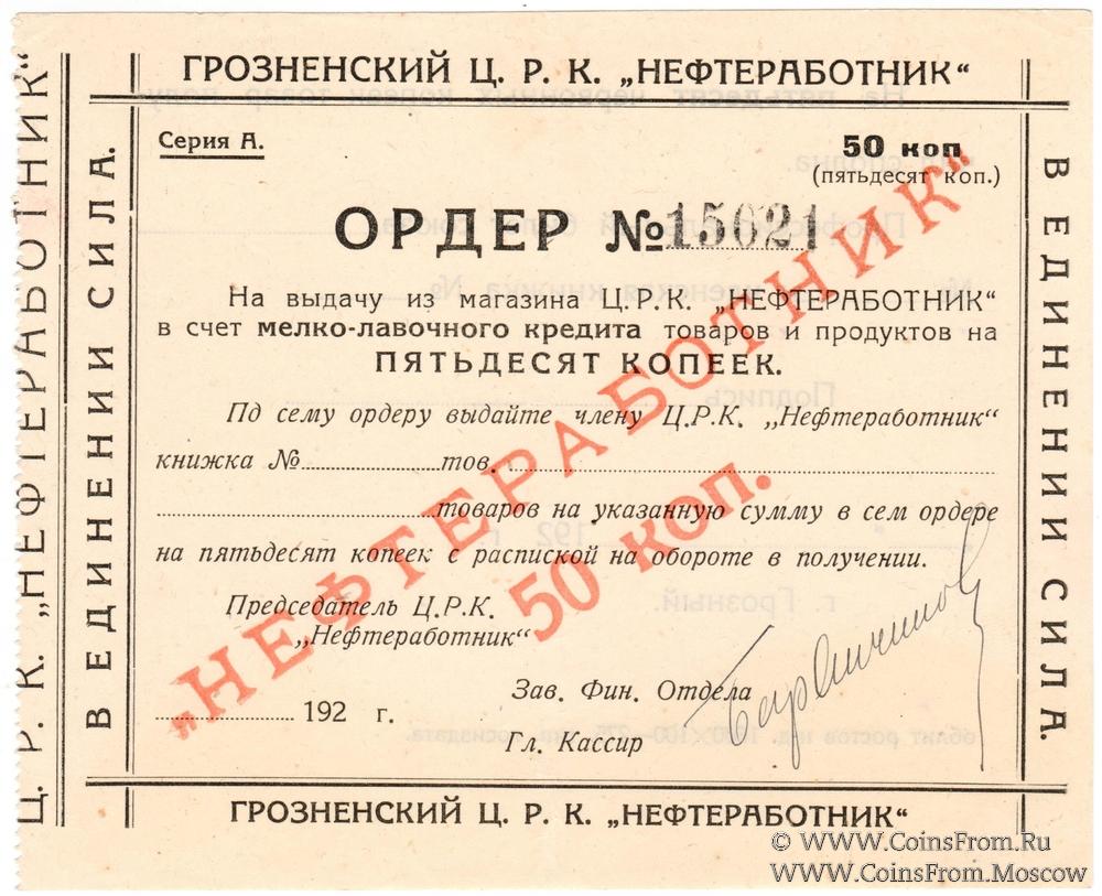 Ордер без даты (1923 г.). Грозненский Центральный Рабочий Кооператив "НЕФТЕРАБОТНИК".
