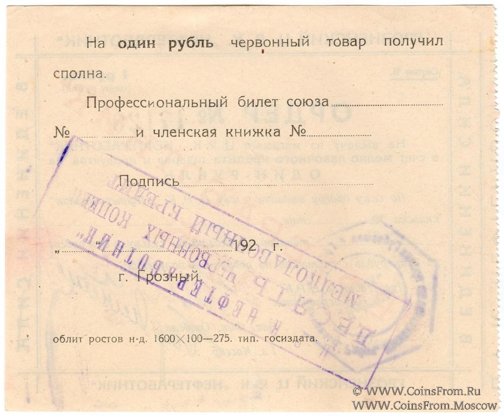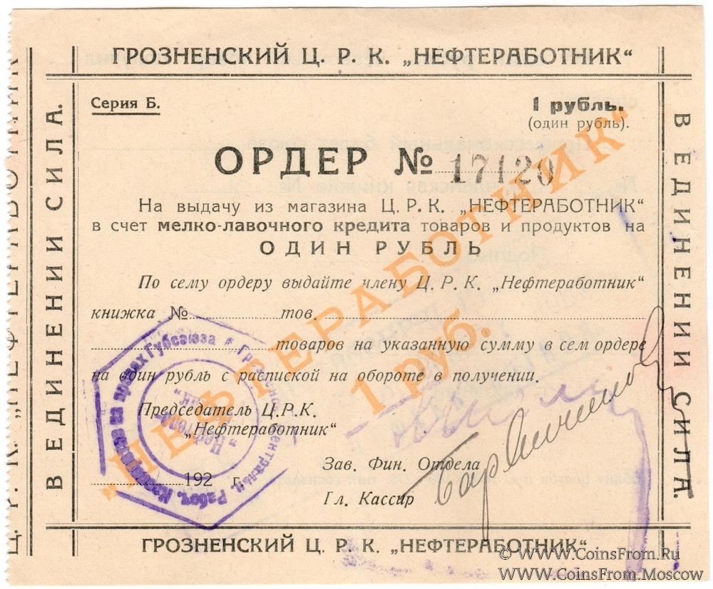 Ордер без даты (1923 г.). Грозненский Центральный Рабочий Кооператив "НЕФТЕРАБОТНИК".