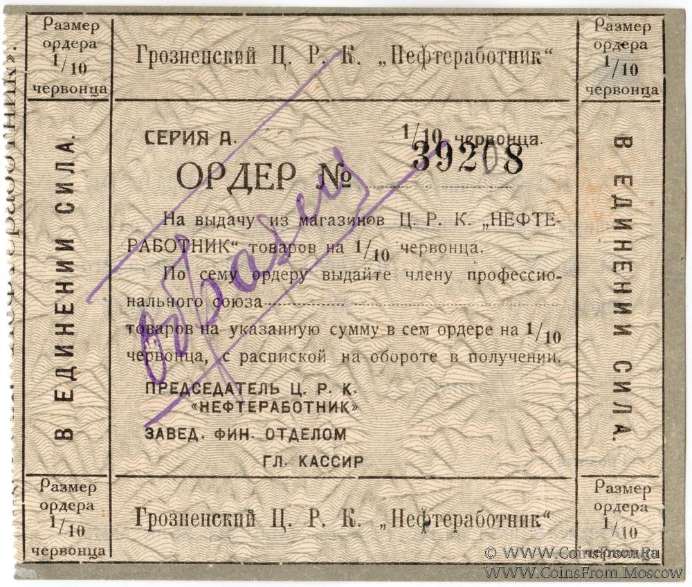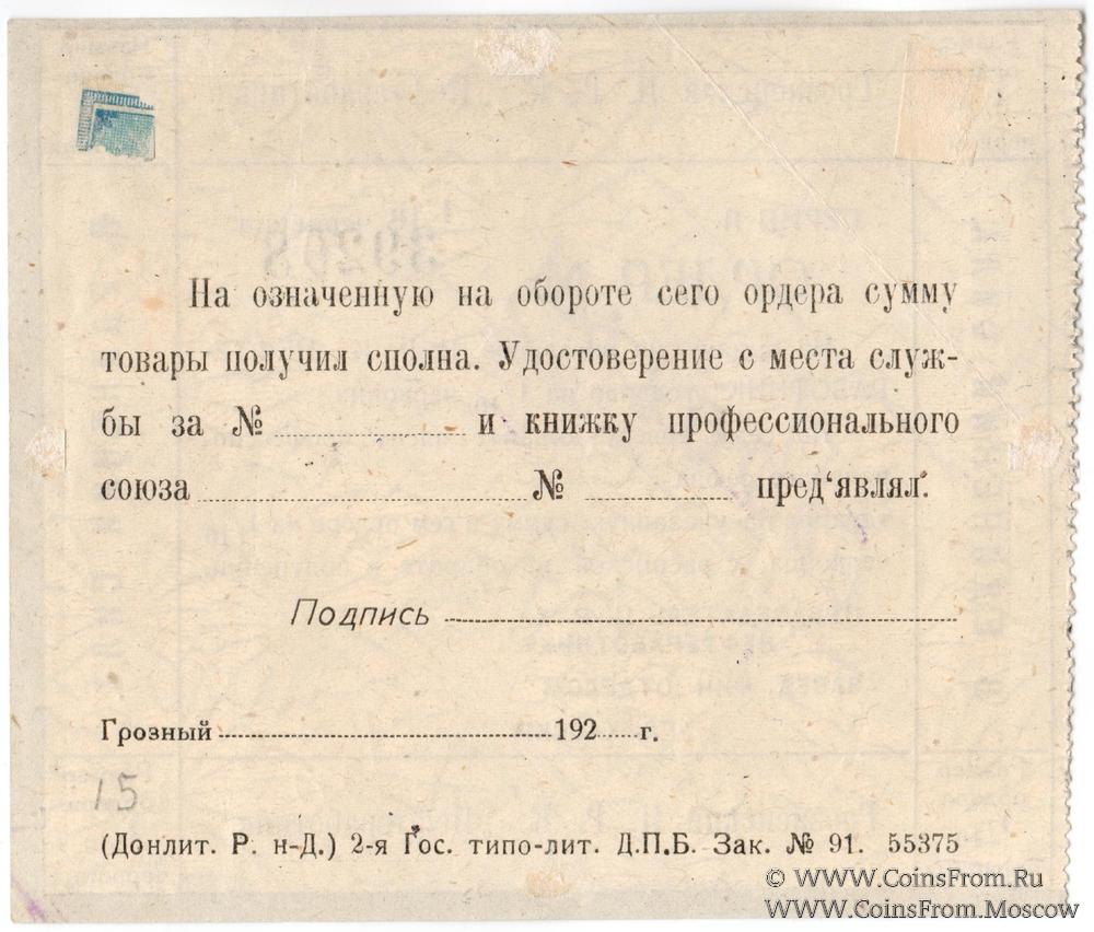 Ордер (в червонных рублях) без даты (1923 г.). Бланк.