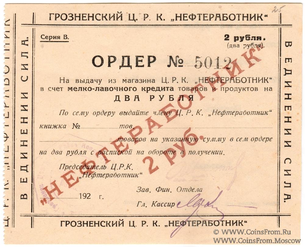 Ордер без даты (1923 г.). Грозненский Центральный Рабочий Кооператив "НЕФТЕРАБОТНИК".