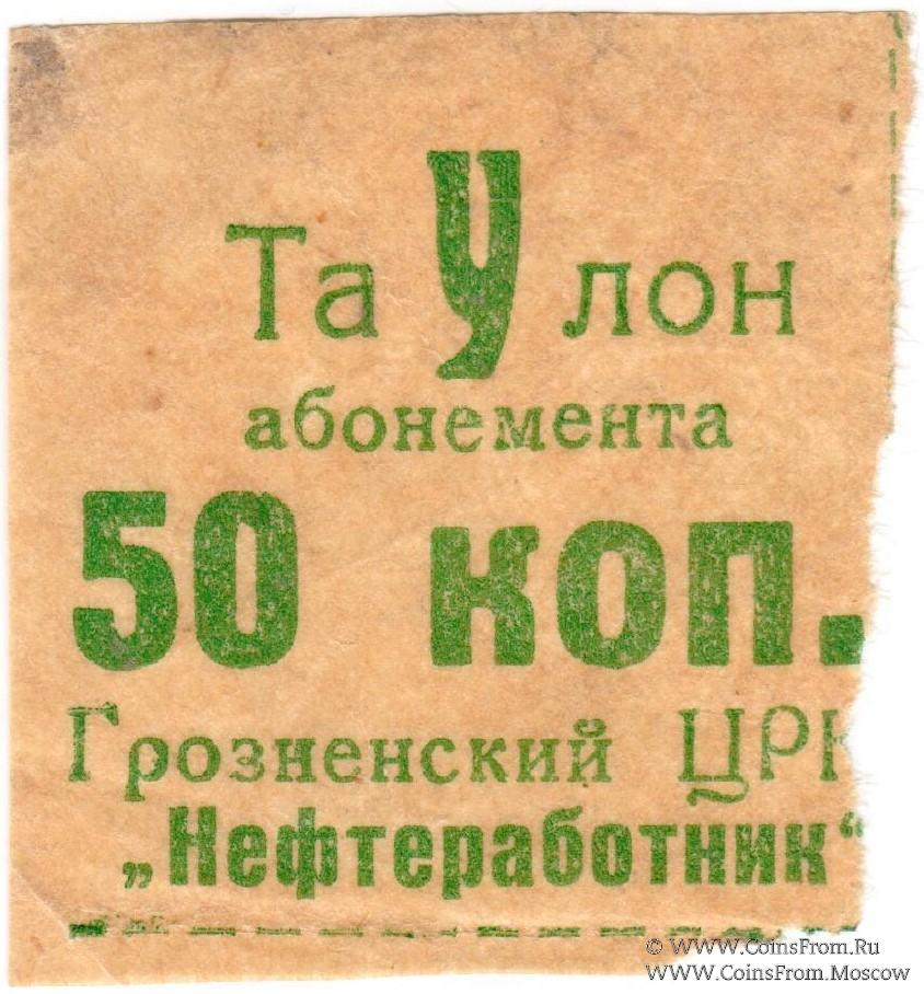 Талон абонемента без даты. Литера У. Зелёный текст. Грозненский Центральный Рабочий Кооператив "НЕФТЕРАБОТНИК".