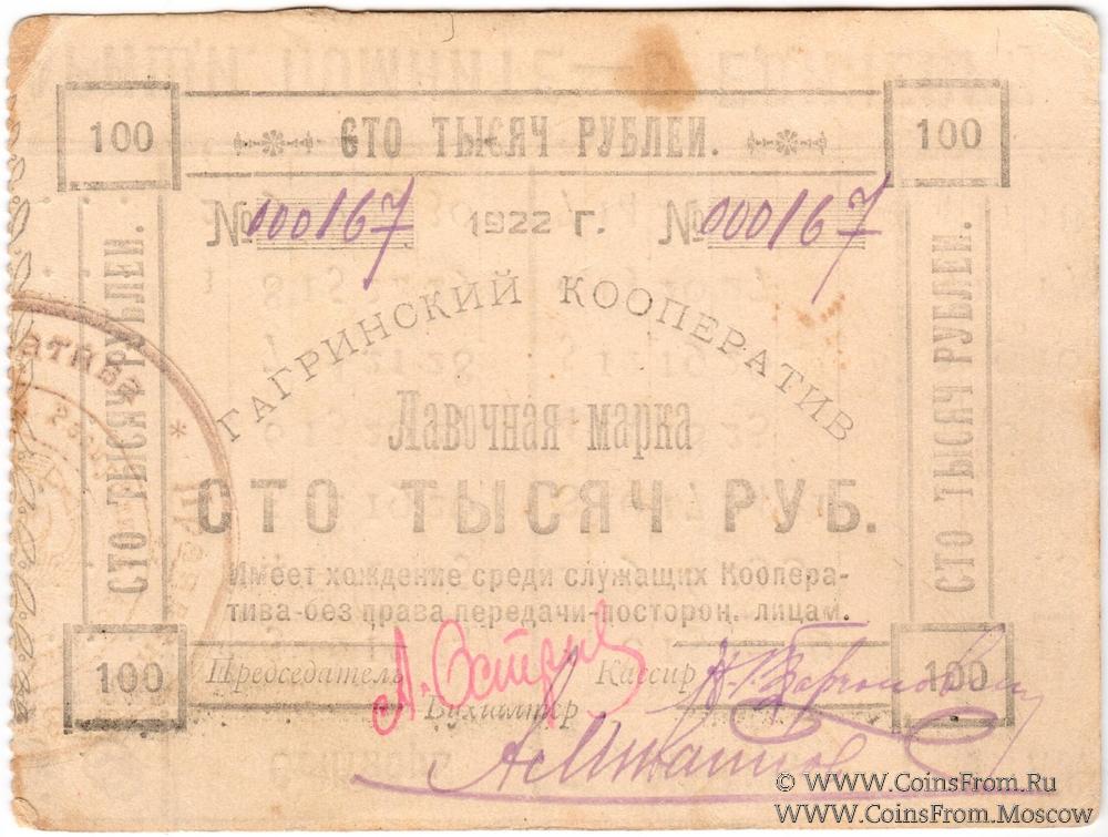 Лавочная марка 1922 г. БРАК: абкляч аверса на ревесе. Фрагмент календаря 1922 г. на реверсе. Гагринский кооператив.