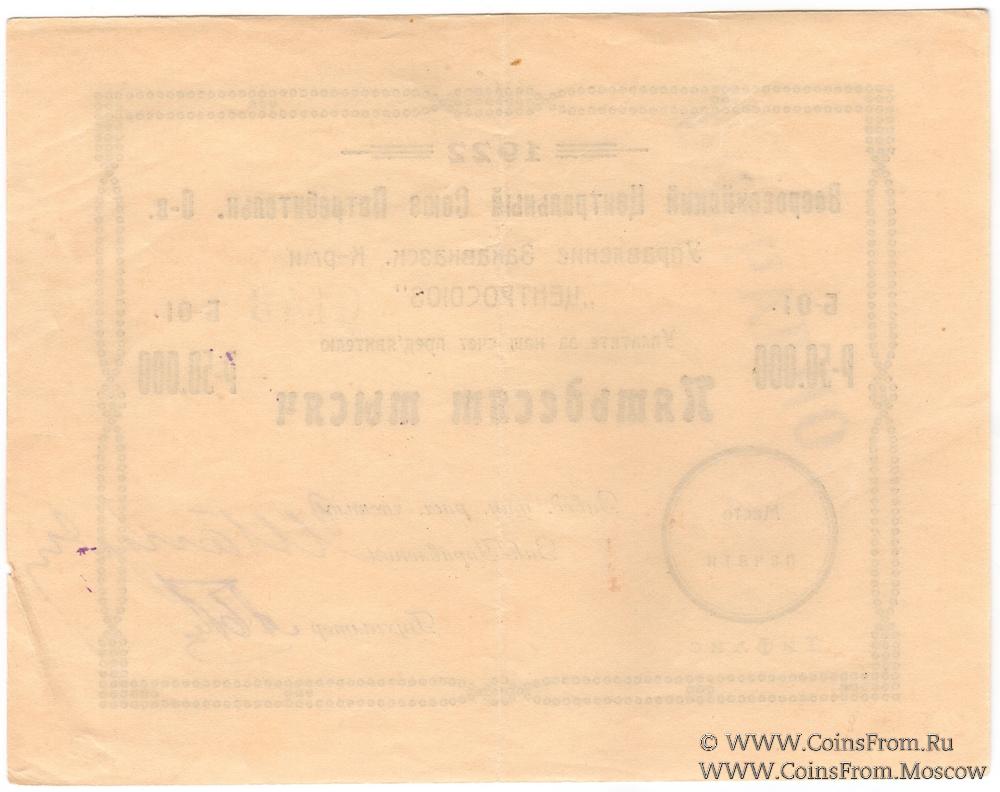 Серия Б-01. Управление Закавказскими Конторами "Центросоюз". Всероссийский Центральный Союз Потребительских Обществ.