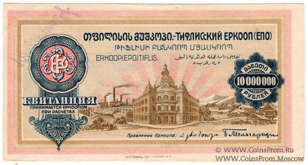 Квитанция без даты. Подпись факсимиле на аверсе. Номер 4-значный на реверсе. Тифлисский ЕРКООП (ЕПО).