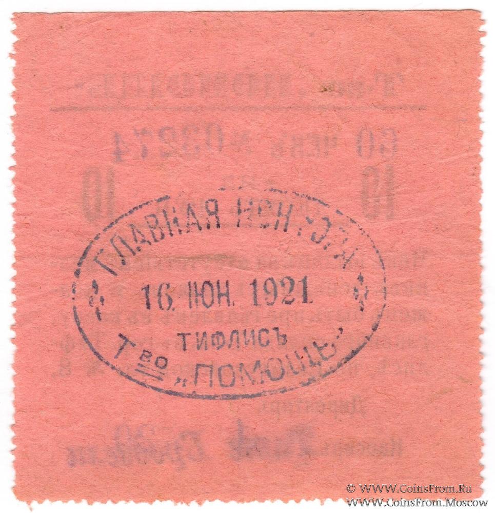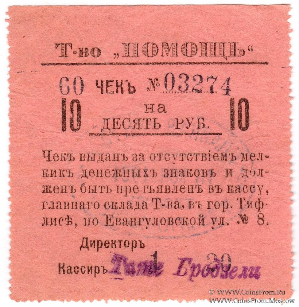 Чек. Товарищество "Помощь", г. Тифлис. Цифры номинала узкие. Буквы широкие. Реверс: овальная печать главной конторы Товарищества "Помощь".