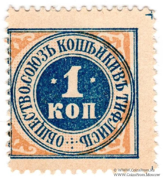 Марка с зубцами без даты. БРАК: сдвиг фона. Общество "Союз копейки" в Тифлисе.