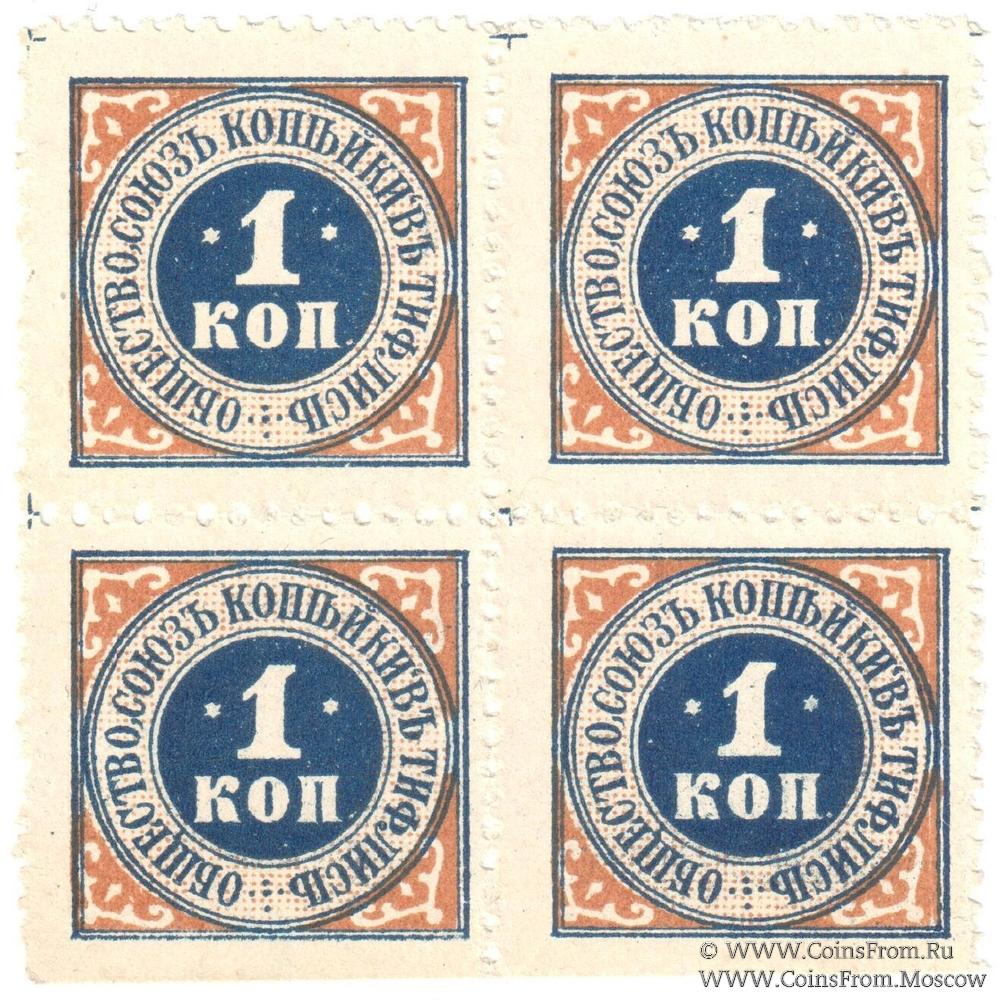 Марка с зубцами без даты. Квартблок. Общество "Союз копейки" в Тифлисе.