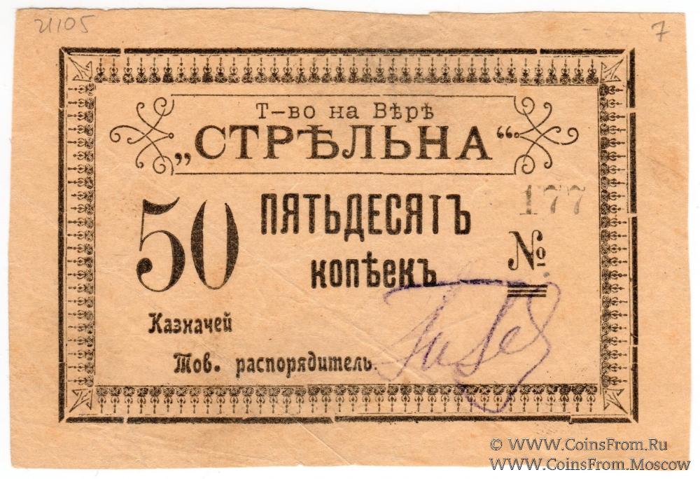 Серо-желтая бумага. С подписью распорядителя. Товарищество на вере "Стрельна".