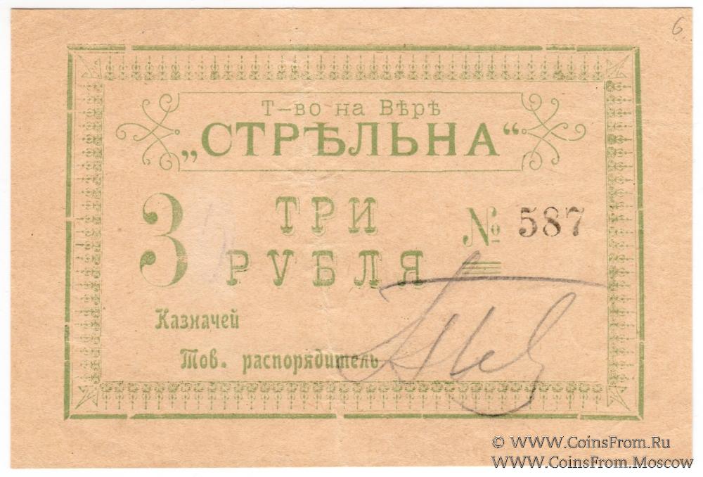 Серо-желтая бумага. С подписью распорядителя. Товарищество на вере "Стрельна".