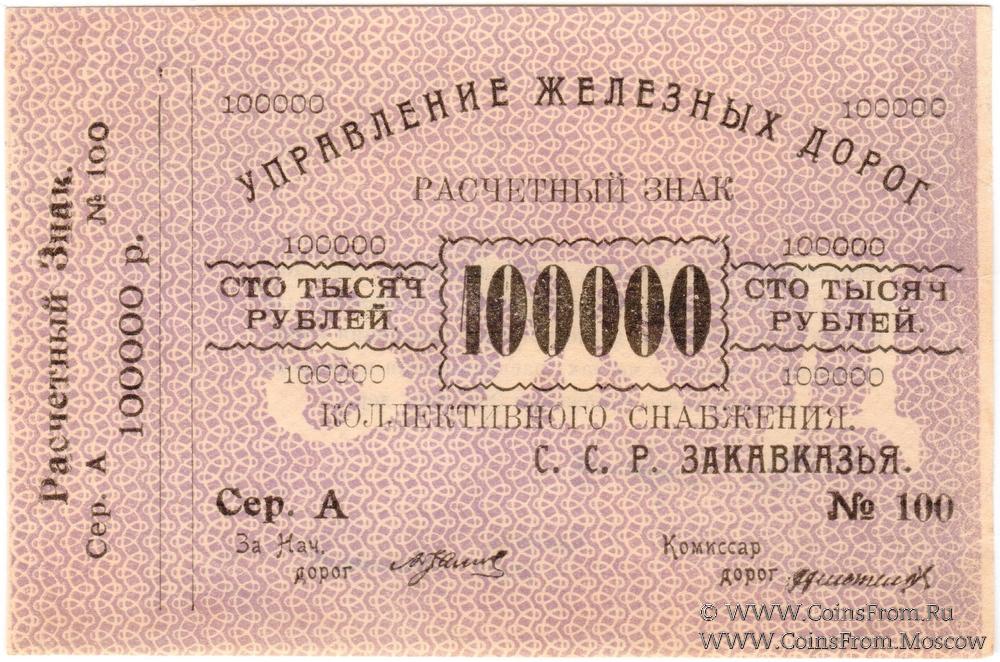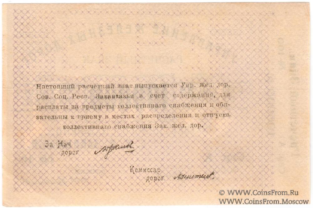 Расчетный знак коллективного снабжения без даты. Управление железных дорог С.С.Р.Закавказья.