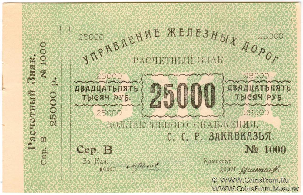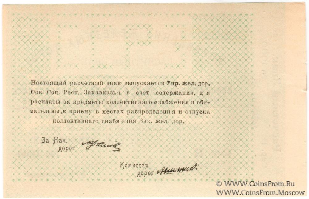 Расчетный знак коллективного снабжения без даты. Бумага жёлтая. Вариант 1 написания буквы "Я" и подписей. Управление железных дорог С.С.Р.Закавказья.