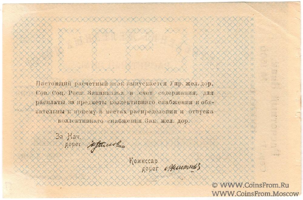 Расчетный знак коллективного снабжения без даты. Вариант 2 написания буквы "Я" и подписей. Управление железных дорог С.С.Р.Закавказья.