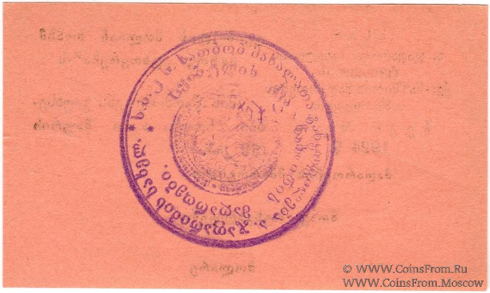 На аверсе: текст на грузинском языке, без серии, номер рукописный 4-значный, подписи факсимиле (управляющий, главбух, кассир). Печать на реверсе.