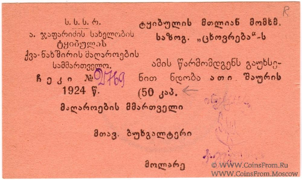 СССР управление каменноугольными шахтами им. Алеши Джапаридзе. Ткибульское горняцкое общество потребителей "Цховреба" ("Жизнь").