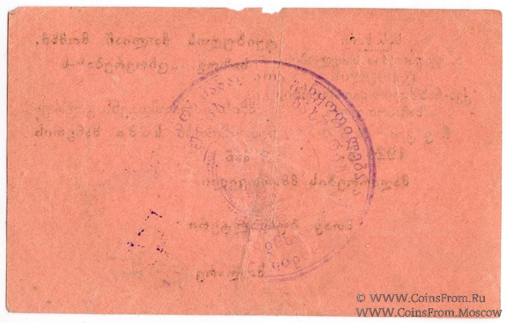 Чек. На аверсе: текст на грузинском языке, без серии, номер рукописный 3-значный, подписи факсимиле (управляющий, главбух, кассир). Печать на реверсе.