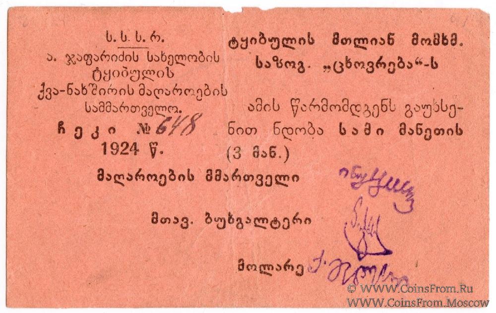 СССР управление каменноугольными шахтами им. Алеши Джапаридзе. Ткибульское горняцкое общество потребителей "Цховреба" ("Жизнь").