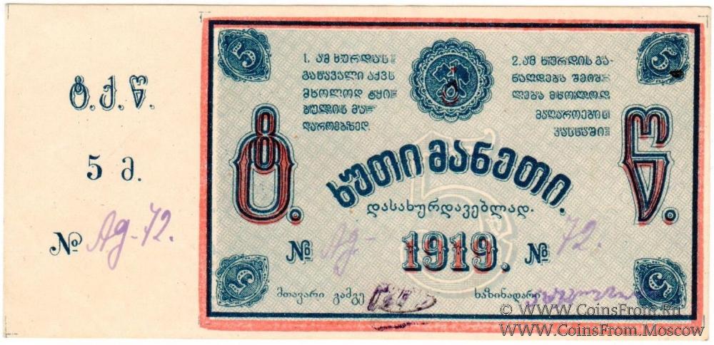 Разменные боны для хождения только в Ткибули, могут быть обналичены в окружной кассе. 1919 г. Ткибульские шахты. Бумага белая. Две подписи.