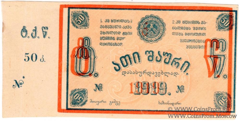 Разменные боны для хождения только в Ткибули, могут быть обналичены в окружной кассе. 1919 г. Ткибульские шахты.