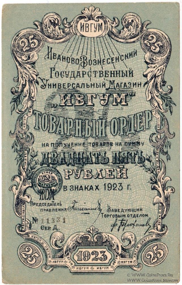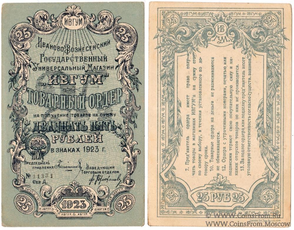 25 рублей 1923 г. (Иваново-Вознесенск)