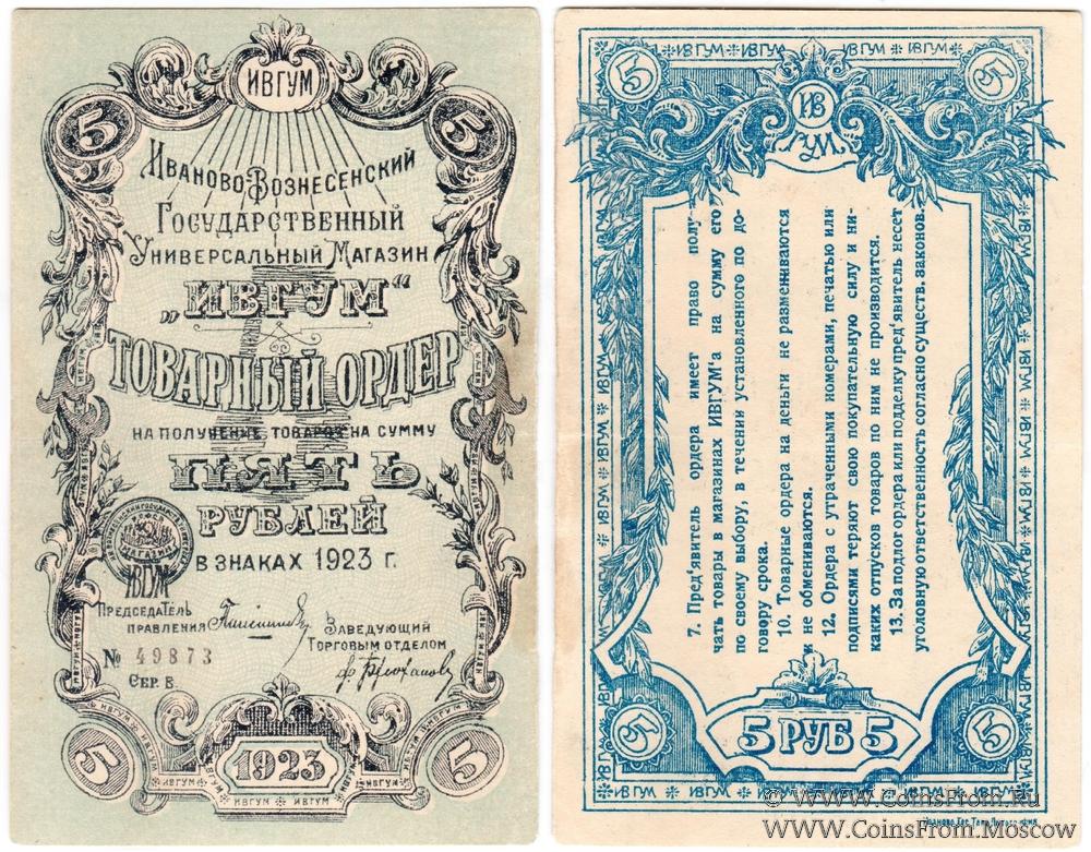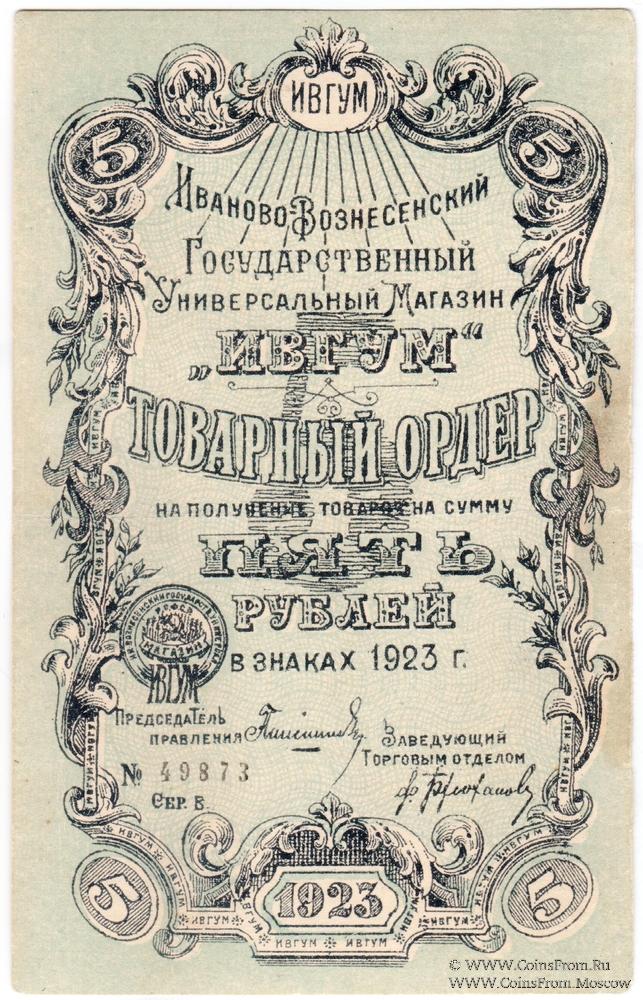 5 рублей 1923 г. (Иваново-Вознесенск)