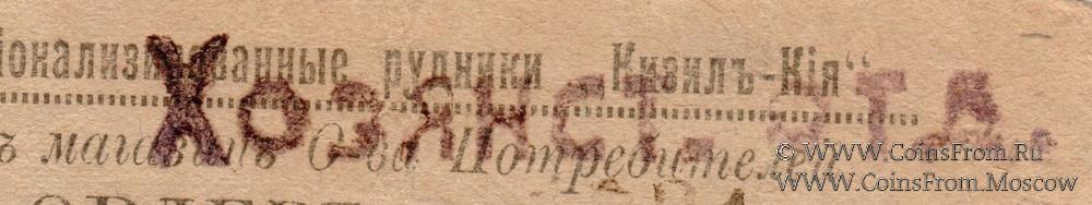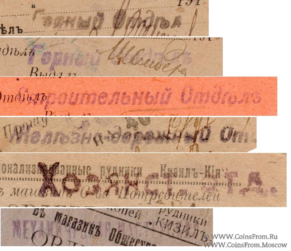 Варианты штампов (черного или фиолетового цвета) на ордерах Национализированных рудников каменно-угольных копей "Кизил-Кия".