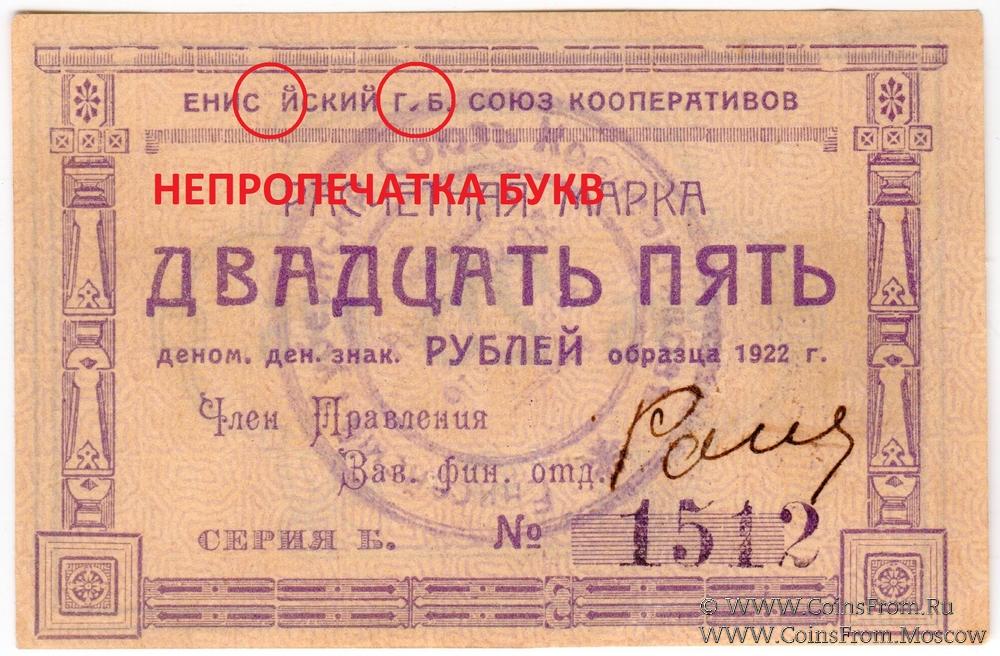 25 рублей 1922 г. (Ачинск) БРАК