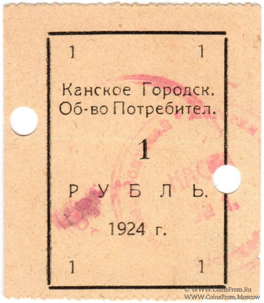 Печать круглая: "КАССА / № 1" (по центру в две строки) / "Канского Городского Общества Потребителей" (по кругу).