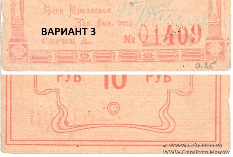 Варианты рамок расчетной марки 1922-1923 гг. разных номиналов (на примере 10 рублей). Енисейский Губернский Союз Кооперативов.