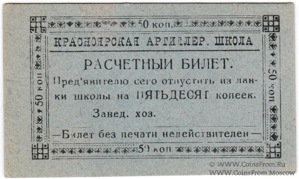 Расчетный билет без даты. Бланк. Красноярская Артиллерийская школа комсостава Р.К.К.А.